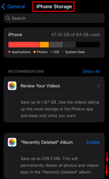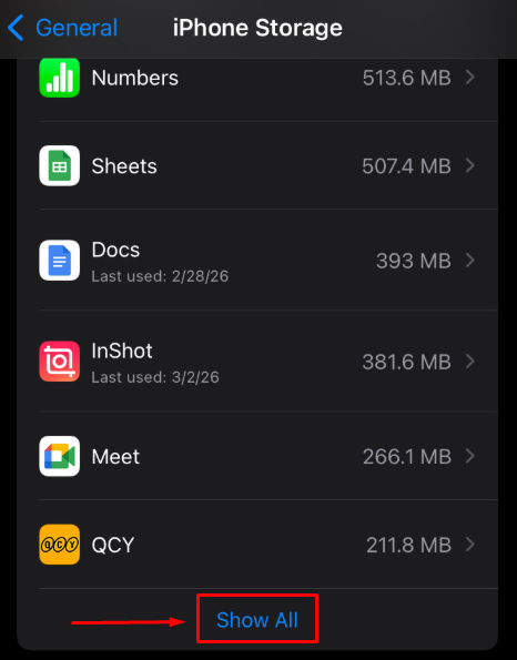 Step 3: Swipe down to find iPhone Storage