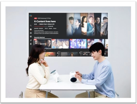 This is where things get interesting, Samsung’s first AI-powered portable projector. There’s also OptiScreen technology use, which is an AI tool to give you 3D auto keystone, real-time focus and more. Viewing is great too, thanks to 430 ISO Lumens, making it twice as bright as the previous generation.
